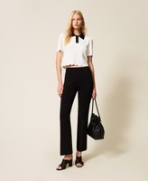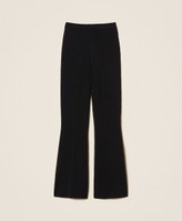 Stretch viscose flared knit trousers with elasticated waist.