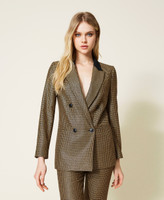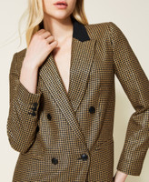 Wool blend double-breasted blazer with houndstooth pattern and lurex thread, solid colour detail, lining.