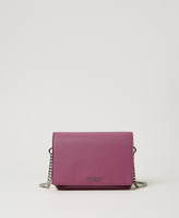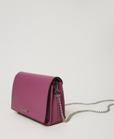 Smooth calf leather shoulder bag with metal lettering logo, flap and magnet closure, galvanized nickel chain.