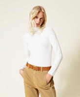 Stretch viscose turtleneck jumper, long sleeves, fitted, small Oval T logo plate on the back.