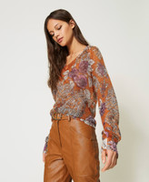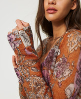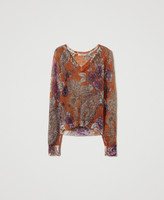 Regular mohair and wool jumper with placed paisley and rose print, slightly slouched shoulders with ribbed cuffs.