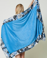 The perfect beach towel for your holiday or a relaxing weekend. Choose this soft beach towel made from doubled cotton terry cloth, with solid colour on the inside and Twinset-exclusive tropical flower print on the edges, printed logo. Matches the collection's swimwear and is also a perfect gift idea.