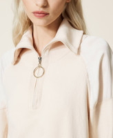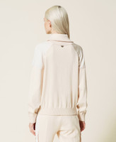 Plain knit cotton jumper with envers satin inserts on the shoulders and sleeves, ribbed roll neck that opens with metal zip and loop puller, ribbed cuffs and hem, regular fit. Match it with tonal trousers for a minimalist, sophisticated look.
