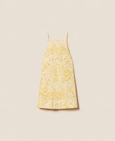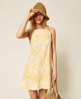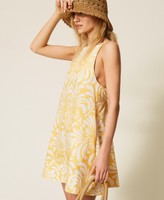 Short cotton poplin dress with botanical print exclusive to Twinset. Thin adjustable shoulder straps, waist seam, side seam pockets, elasticated waist at the back with drawstring with sea-themed metal ends, heart-shaped metal logo at the back, flared fit.