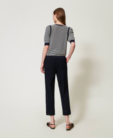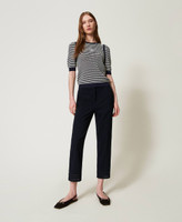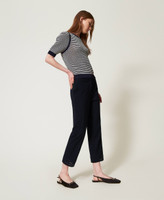 - 69% polyester 28% viscose 3% elastane. Pocket lining: 100% polyester. Embroidery: 100% polyester