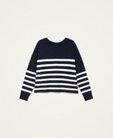 Stretch viscose dual use striped jumper (can also be used as cardigan) with decorated buttons.