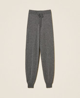 Wool and viscose blend plain knit trousers with ribbed trims at the hem. Elasticated waist with drawstring, Oval T logo plate, joggers fit.