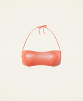 Bandeau bikini top made of doubled glitter fabric, with removable padding and side stays.