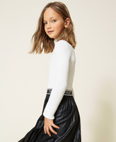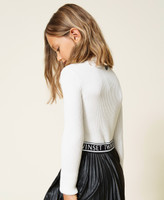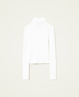 An essential Twinset piece for a myriad of looks. Choose this ribbed stretch viscose turtleneck with long sleeves and logo on the back. A versatile garment you can match with everything.