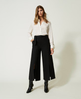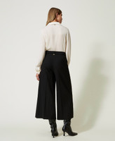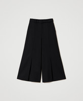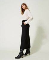 - 53% polyester 43% wool 4% elastane. Material 2: 68% acetate 32% polyester. Belt: 53% polyester 43% wool 4% elastan.
