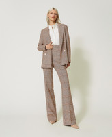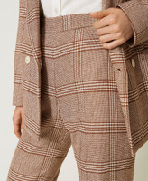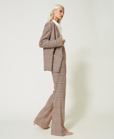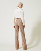 High waisted flared trousers made from yarn-dyed viscose blend with glen plaid pattern, slant pockets.