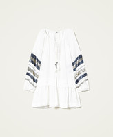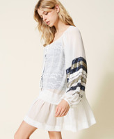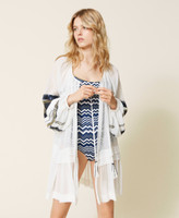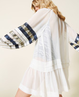 Georgette open kaftan with tie-up laces, long sleeves with sequin embroidery, flounce at the hem.