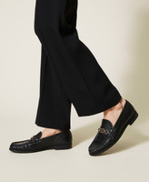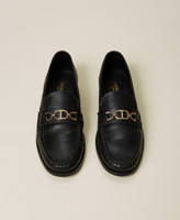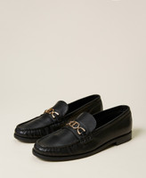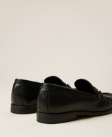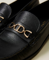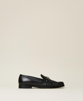 Calf leather loafers with metal Oval T clasp and leather sole.
