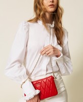 Mini bag made from smooth faux calf nappa leather with hot print quilted effect. Zip closure, metal lettering logo, removable chain strap with charms.