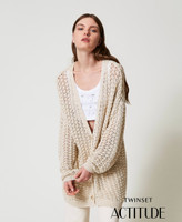 Actitude collection cotton blend openwork knit maxi cardigan, V-neck, button fastening, wide fit.