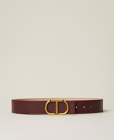 Reversible leather belt with galvanised copper brass Oval T logo.
