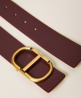 Don't miss this reversible regular waist leather belt with galvanised copper brass Oval T logo-buckle. Versatile and sophisticated, it will add extra zest to your dress or trousers outfits.