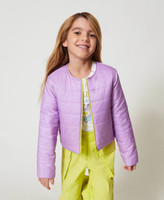 Girls' reversible two-tone puffer jacket made from quilted fabric, with crew neck, zip fastening, inlaid side pockets, straight fit.