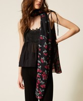Wool and modal blend stole with a Twinset-exclusive cherry print and contrasting logo.