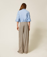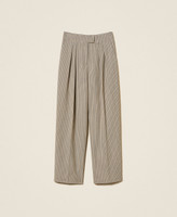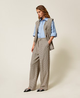 Actitude collection micro houndstooth trousers with mannish zip and hook fastening, slant pockets, logo plate and double pleat on the front, palazzo fit.
