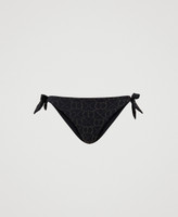 Jacquard bikini thong with lurex Oval T all over, adjustable side laces.
