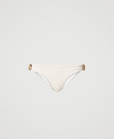 Jacquard Brazilian bikini bottom with lurex chevron pattern, mock horn loops on the sides, lining.