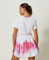 - 100% cotton. Material 2: 100% cotton. Lining: 100% cotton. Belt: 90% polyester 10% metallic polyester. Material 3: 95% cotton 5% elastane