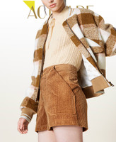 Actitude collection corduroy shorts with maxi pockets in front, covered button and zip closure, belt loops.