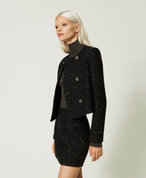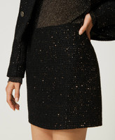 Bouclé wool blend miniskirt with micro sequins, side zip closure, lining, straight fit.