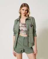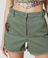 - 98% cotton 2% elastane. Pocket lining: 100% cotton. Embroidery: 100% polyester. Details: 100% polyamide.