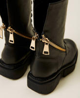Actitude collection combat boots with decorative side zips and logo, front fastening, inner zip, chunky rubber sole.