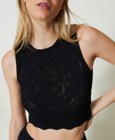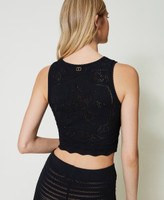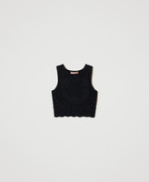 Sophisticated craft work for this cropped top made in Italy from mixed stitch knit with a crochet-like effect. Fitted, with round neck, scalloped edges and Oval T logo plate on the back, no sleeves. Wear it on its own or in a layered look to enhance your style.