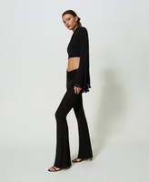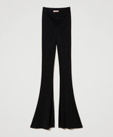 Flared crêpe viscose jersey trousers with low waist, gathering in front, Oval T logo plate on the back.