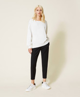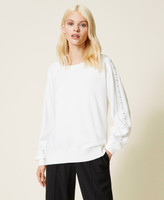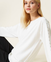 The riveted pearls on the sleeves of this viscose blend jumper add a chic twist to this wardrobe classic. Round neckline, slouched shoulders and ribbed hem with a loose fit inspired by the world of sportswear and perfect for travel looks.