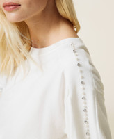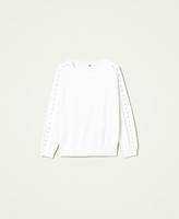Viscose blend jumper with comfort fit, round neck and riveted pearls on the sleeves.