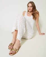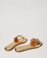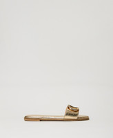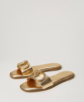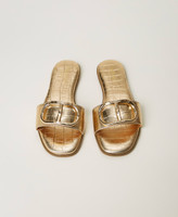 An instant glam look with these laminated leather sandals with croc print. gold-tone galvanized Oval T logo in front and tunit sole. The perfect base for a myriad of outfits.