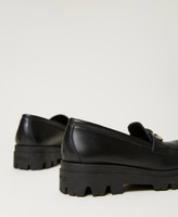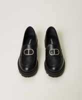 Leather loafers with metal Oval T logo and chunky rubber sole.