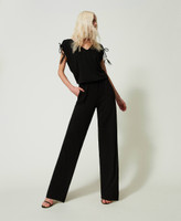 - 95% viscose 5% elastane. Material 2: 100% polyester. Material 3: 100% ostrich feathers