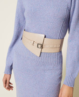 New and essential, defines every outfit. Leather-like asymmetric bustier belt with crocodile print, high waist, strap and buckle in front.