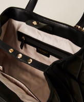 Heat-sealed quilted and padded shopper bag made from faux nappa calf leather. Double handle, removable shoulder strap for shoulder or cross-body wear, magnet closure, metal Oval T logo on the front, lining. The sides can be opened outwards or folded inwards and held by a strap.