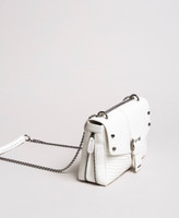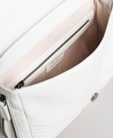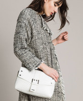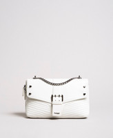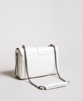 Crackle-effect leather shoulder bag with front quilting, flap with buckle and heart-shaped studs.