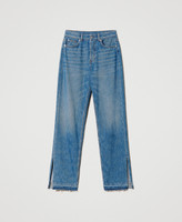 Actitude collection regular fit jeans with medium-dark wash, five pockets, slits at the hem, frayed hem with bleaching.