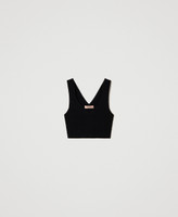 Add a contemporary note to your style with this cropped top made in Italy from ribbed viscose blend knit. Fitted, with wide round neck in front and V neck on the back, metal Oval T logo. Wear it with a cardigan for a sophisticated knit-set.