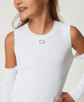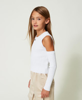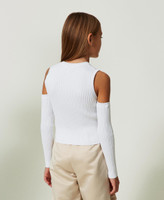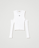Viscose blend ribbed top with metal Oval T logo on the front, removable buttoned sleeves.