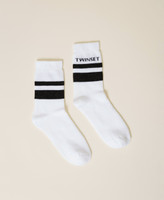 Terry cloth socks with contrasting stripes and jacquard logo.