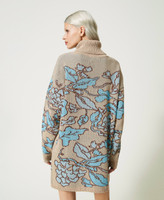 Maxi jumper made from a yarn developed from a blend of materials of which 50% are recycled, featuring pique jacquard foliage pattern. This style is part of the capsule collection created as a collaboration with Marco Rambaldi.
