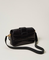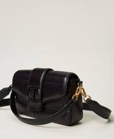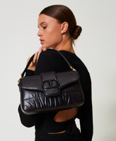 Amie Ski' medium top handle shoulder bag made from puffer-effect quilted nylon with tonal faux calf leather padding. Flap and magnet closure, handle for on-shoulder or hand carrying and strap, both removable, tonal Oval T detail, lining.
