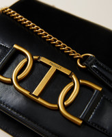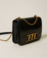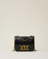 Full grain Italian calf 'Grace' leather bag, decorative logo chain, padded flap and magnet closure, metal shoulder strap. Twinset spreads its message of welcome and kindness in all the world's languages.