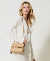 ‘Dreamy’ full grain Italian calf leather shoulder bag, quilted, with chain strap. Twinset brings its message of kindness and welcome in all the world's languages.