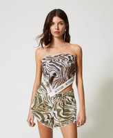 Actitude collection cotton bull shorts with animal print, five pockets, asymmetric frayed hem, belt loops.